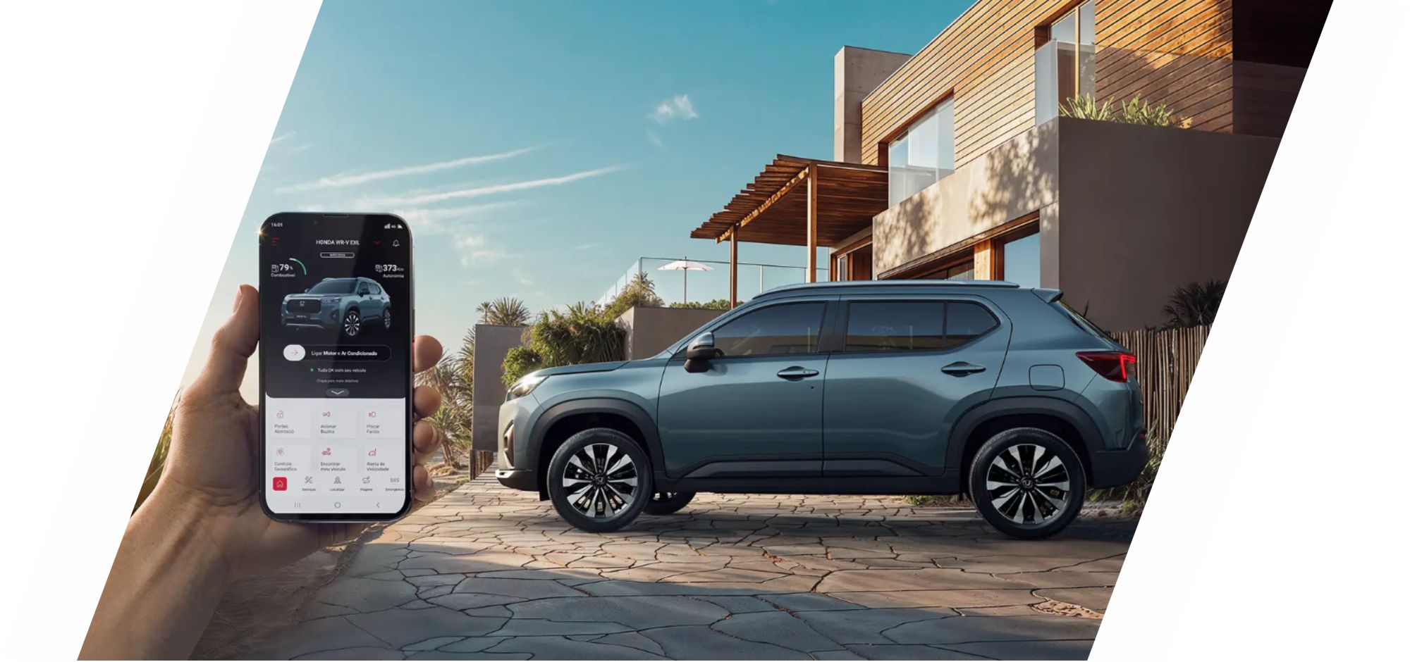 Através do aplicativo, você obtém todas as informações do veÃculo e executa controles remotos.